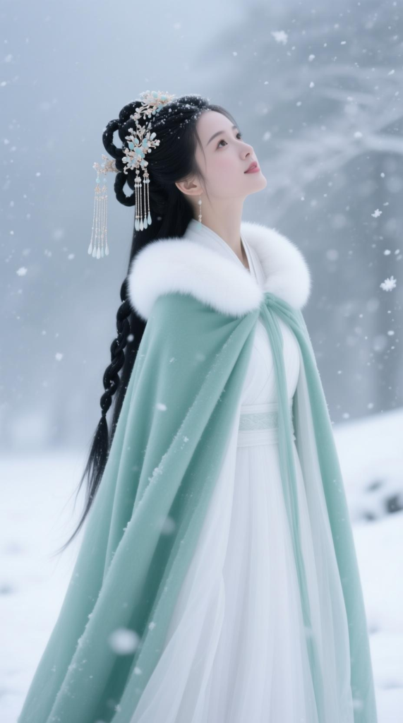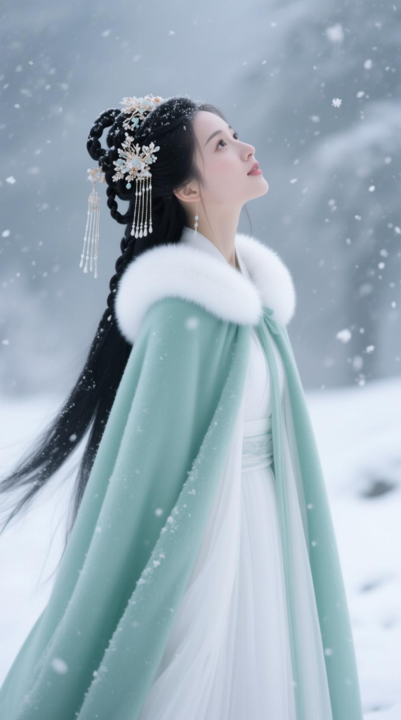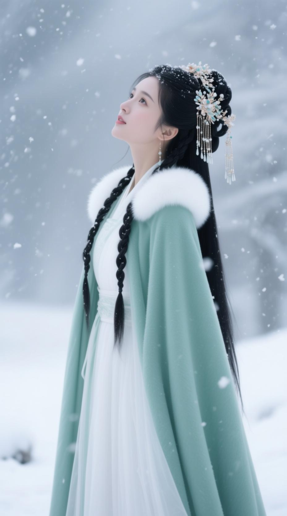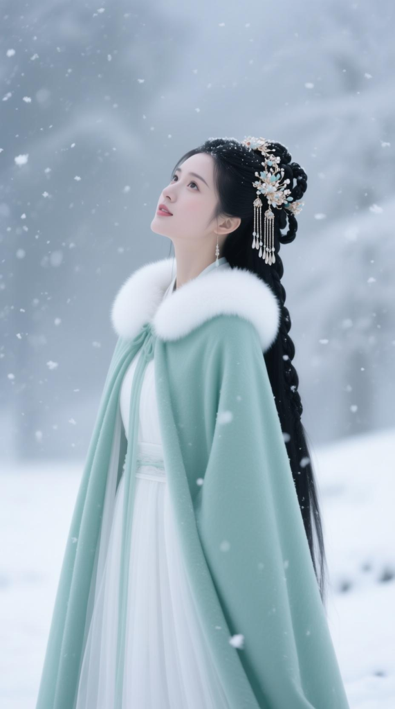 大雄 出图预览 随机展示 2025-09-09 故里纷飞雪-出图预览 出图预览: liblib-里布里布Ai-【点击跳转】 基础算法:qwen-image 尺寸:928×1664 步数:30 采样器:Euler CFG:4 提示词: 雪飞霜,黑色披发,美丽的面容,甜美的编发精致华丽的流苏头饰穿着洁白色裘皮古装长裙,披着冰绿色的斗篷站在雪地中,雪花飘落,朦胧氛围,正面像,抬头赏雪景,8K高清,真人,